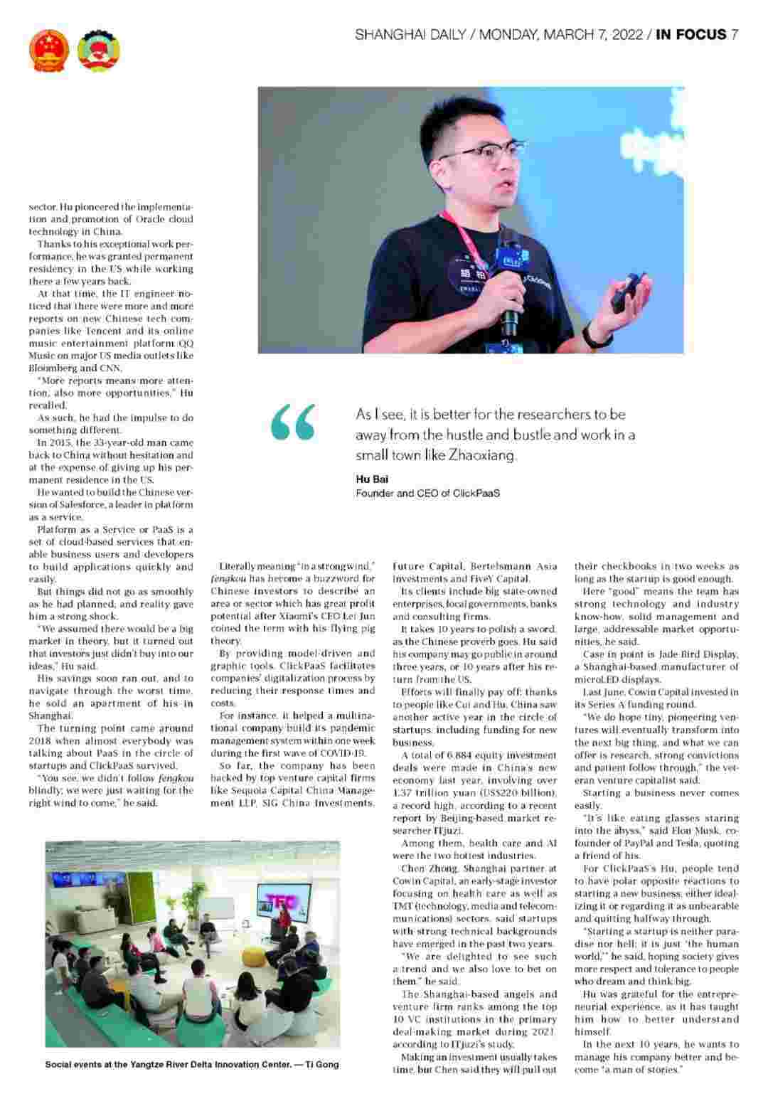 《上海日报》专访NO钱包创始人、、CEO胡柏,,,探究其创业背后的故事!!!